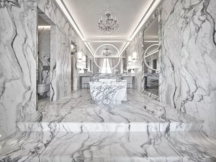 展品中的部分雕塑,使用了一種名為Arabescato Fantastico的大理石。該石材天然潔白,并且?guī)в徐o脈狀的暗灰紋路,十分罕見。據(jù)悉,出品Arabescato Fantastico的采石場(chǎng)已經(jīng)塵封了超過30年。